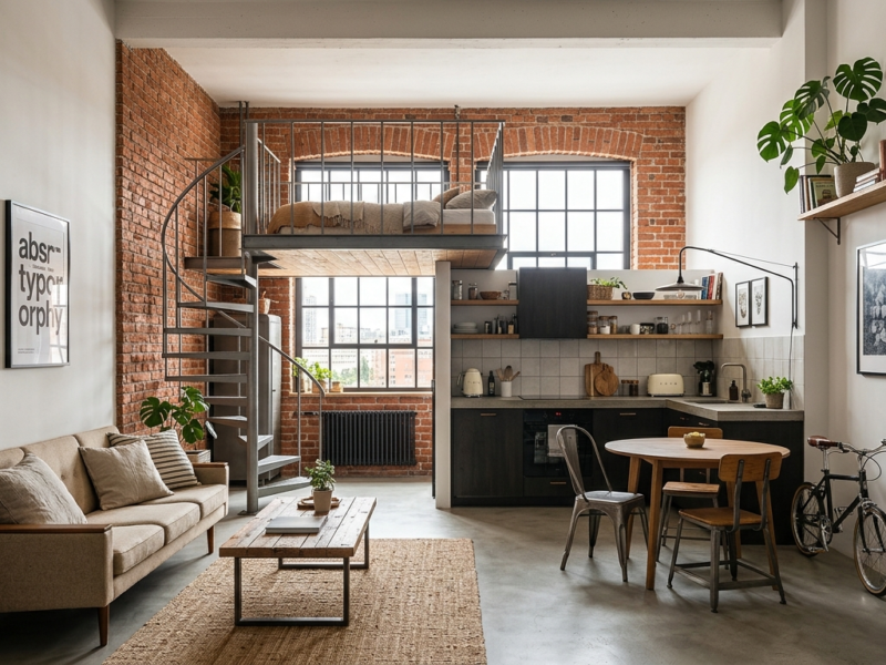 Naturalność: Wprowadź do wnętrza zielone rośliny. Będą one doskonale kontrastować z surowością mebli loftowych.